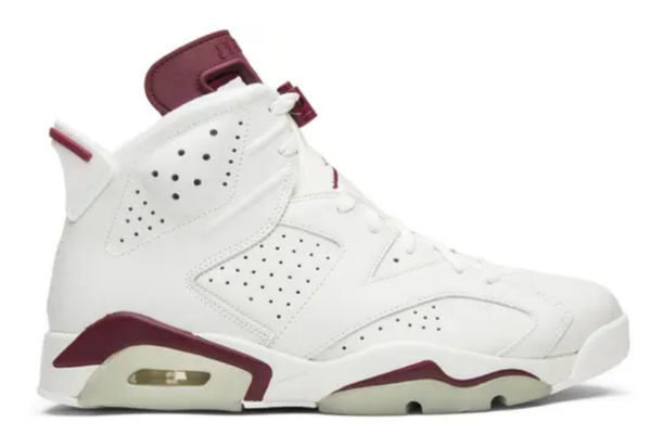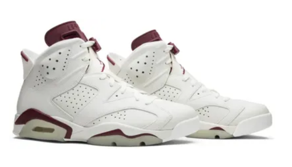 First released as one of five original colorways in 1991, the Air Jordan 6 ‘Maroon’ was the only OG color to never see a retro release. Nike finally revived this classic in 2015 when its first retro was released as part of a massive Holiday drop. The design features branding details that include the Jumpman logo on the shoe’s rubber tongue and lace overlay as well as OG elements like the Nike Air branding on the heel and clear, translucent outsole.