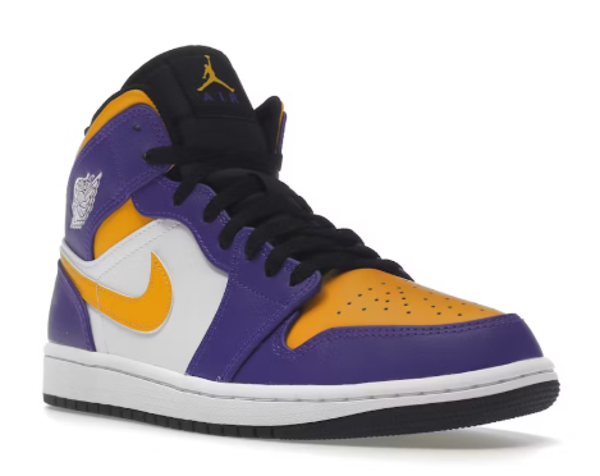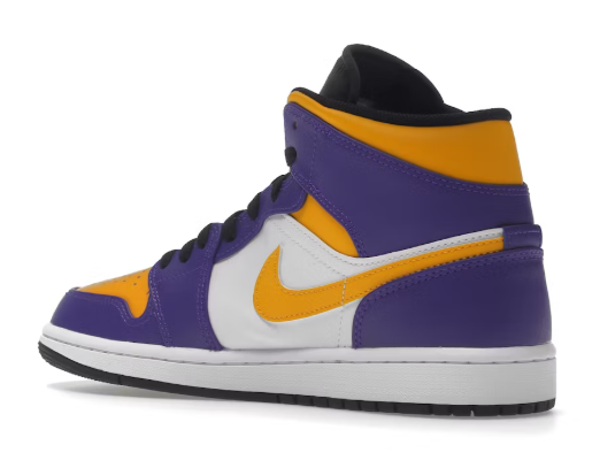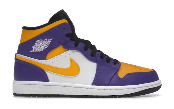 The Air Jordan 1 Mid Lakers 2022 is a mid-top sneaker dressed in the NBA Los Angeles Lakers’ trademark colors of yellow and purple.