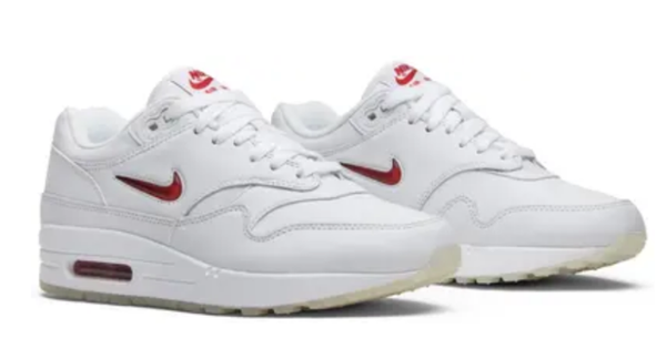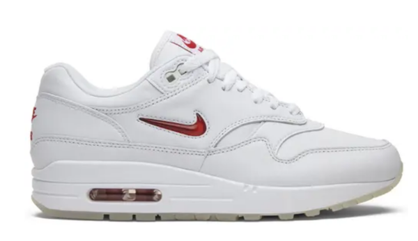 The Jewel Swoosh first arrived on-the-scene on the Air Force 1 in 1997. Since then, it's graced additional classic silhouettes, including the Air Max 1. In homage to the elevated branding, Nike brought back the popular Swoosh with the Air Max 1 Premium SC Jewel 'White Red' sneaker in June 2017. The leather shoe is outfitted with Air Max 1 staples like its signature overlays and visible Max Air unit in the heel.