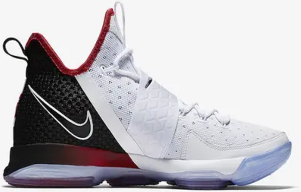 The LeBron 14 EP ‘Flip the Switch’ launched in May 2017 as part of a Nike Basketball footwear collection meant to celebrate the electricity of the NBA playoffs through unique patterns and broken Swoosh branding. LeBron James’ 14th signature shoe features a white and black mesh upper highlighted by a fragmented Swoosh on the dynamic midfoot strap. The black and red midsole rests on an outsole sporting strategically placed Zoom Air pods.
