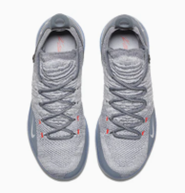 Kevin Durant’s KD 11 appears with a mid-top construction, sporting Cool Grey tones throughout the stretchy Flyknit upper. Flywire cables enable a locked-down fit, while the icy blue outsole is packed with Nike React and Zoom Air cushioning. ‘KD’ branding appears on the heel, and pops of orange arrive via the heel and midfoot.