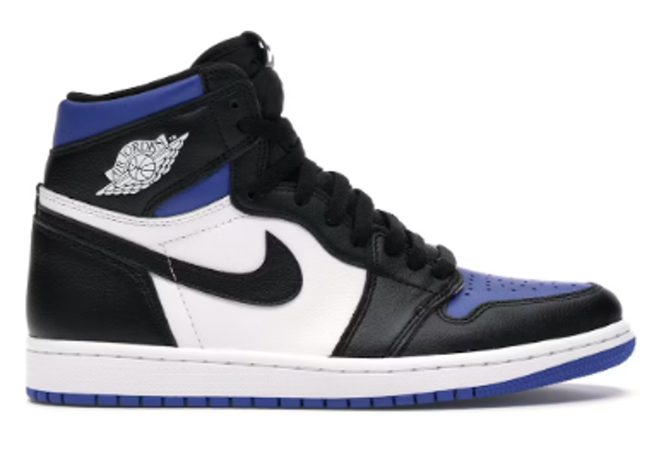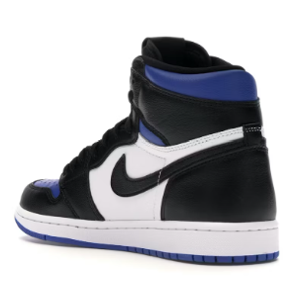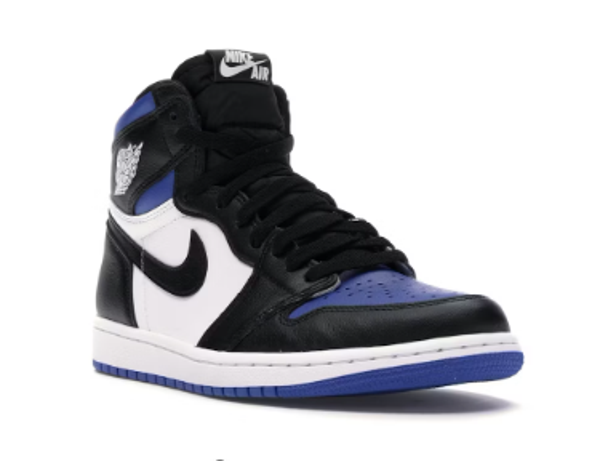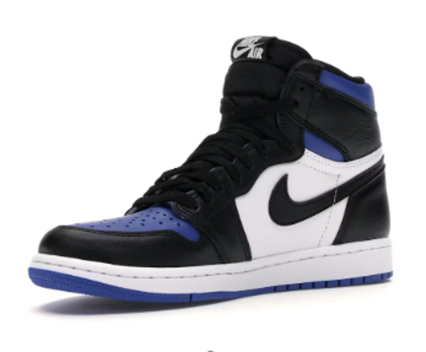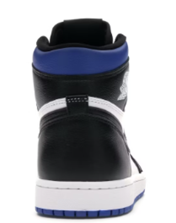 The Air Jordan 1 Retro High OG 'Royal Toe' updates a classic colorway. Built with leather, the upper appears in white with black overlays, highlighted by hits of Game Royal on the collar and toe box. A lightly padded nylon tongue supports the fit, while underfoot, a white Air midsole gives way to more Game Royal on the circular outsole.