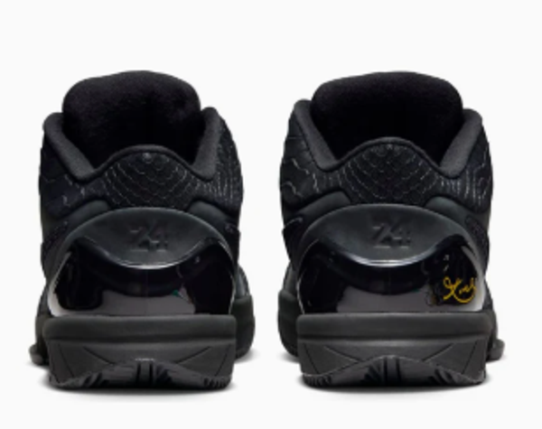 With a textured snakeskin pattern on the collar, forefoot overlay, and Swoosh, the Nike Zoom Kobe 4 Protro 'Gift of Mamba' showcases a black nubuck upper with Kobe's signature in yellow on the lateral-side TPU heel counter. A coordinating black Phylon midsole is equipped with a Zoom Air unit in the forefoot for optimal responsiveness on the basketball court.
