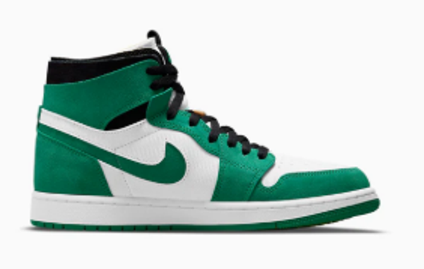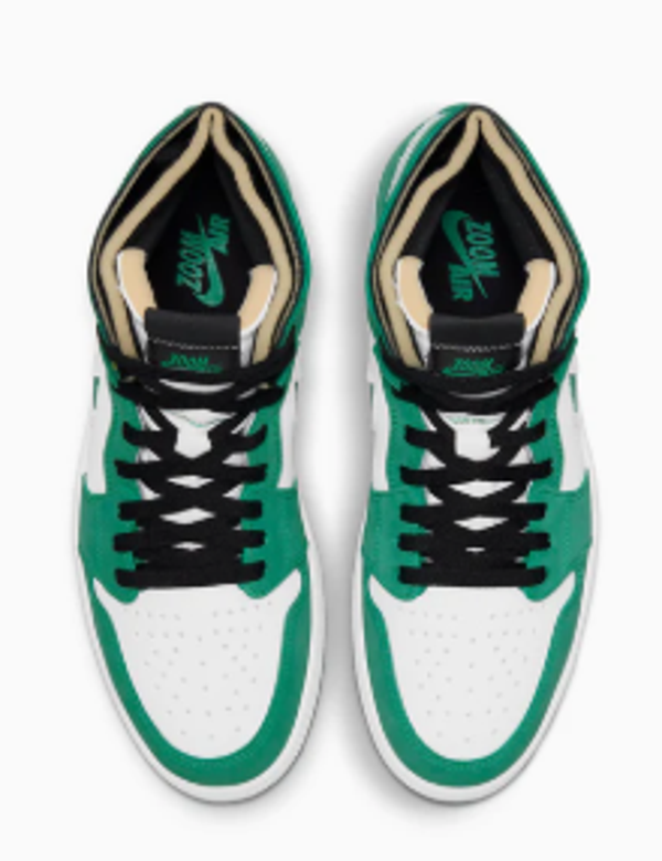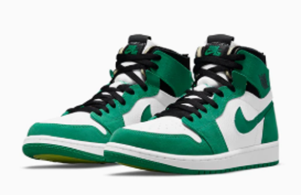 Air Jordan 1 Zoom Air CMFT "Stadium Green" uses the green suede on the upper and the “Nike” smoosh while the profiles and the shoebox features a white base with a low-key strip pattern.