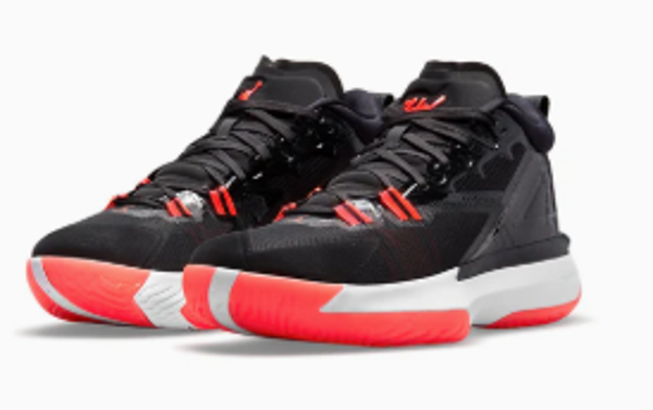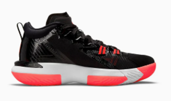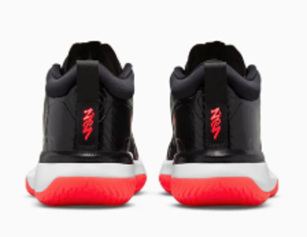 The Jordan Zion 1 'Bloodline' brings a classic Jordan Brand colorway to Zion Williamson's debut signature shoe. Built with textile, the shoe's upper appears in black, supported by no-sew overlays and highlighted by the internal forefoot straps, which appear in Bright Crimson. A heel pull-loop is included for easy on and off, while underfoot, a full-length Zoom Air strobel works with added Zoom Air in the forefoot to provide cushioning. Further Bright Crimson marks the rubber outsole, which offers traction.