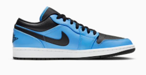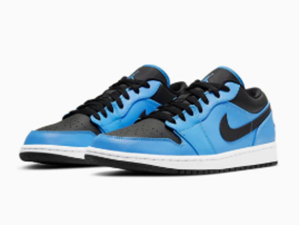 The Air Jordan 1 Low 'University Blue Black' gives a new iteration of the iconic sneaker form, redesigned in University Blue and Black. Its upper spotlights a leather base with overlays and the standard Wings’ Logo. On the upper, a Swoosh emphasizes the design with a breathable nylon tongue. The midsole is built on top of a rubber outsole with a circular build for traction.