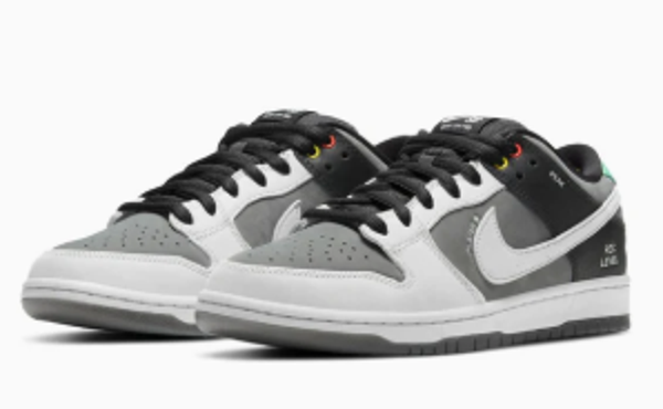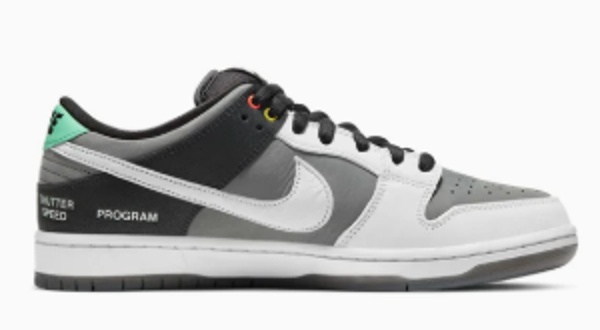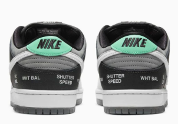 Inspired by the Sony DCR VX1000 camcorder, crucial to the creation of skate videos in the 90s, the Dunk Low SB 'Camcorder' emerges with a tribute look. The shoe's nubuck upper appears in a series of white, black and grey hues, with various camcorder functions making the synthetic leather heel overlay, including 'Shutter Speed' and 'Rec Level.' Underfoot, a Zoom Air sockliner provides cushioning, with a semitranslucent grey rubber outsole sporting a concentric pattern for traction.